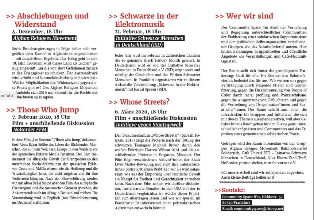 antirassistisch und politisch aktive Gruppen und Menschen. Einen Raum,